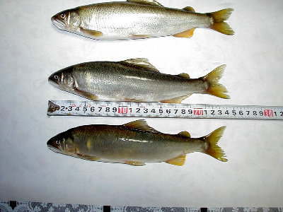 平成13年8月29日 高原川 全部で20匹ぐらい釣れた(18〜25cm)