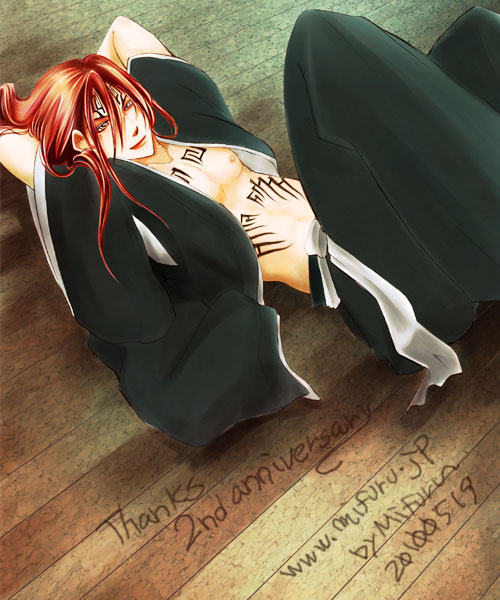 白恋サークル『ハルシオン』様のサイト2周年を記念してのフリー配布 イラストを頂いてきました。 恋次は大、大、大好きなのですが、こんなにも心乱される恋次に出会 えるなんて、感激でした! もうもう一目惚れして、夢中で初めての「お持ち帰り」というものを体験 させて頂きました。凄くドキドキしました。あぁ、幸せだ! 未歩流様、本当にありがとうございました。 サイト名:ハルシオン(http://www.mifuru.jp/bleach/index.htm) 管理人:未歩流-みふる-様 TOPへ