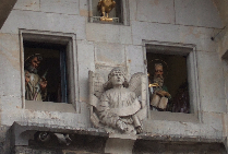 定刻になると、時計上部の窓が開いて、キリスト教12使徒が次々と現れる。