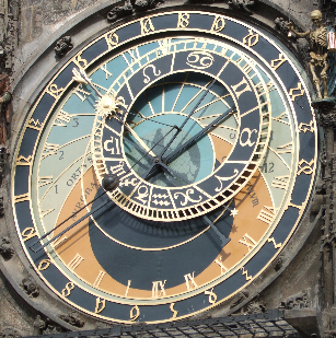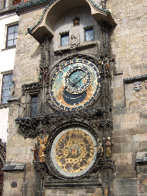 旧市庁舎塔にある天文時計。とても不思議な形をしている。