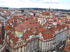 時計のある塔は中に入ることができる。上まで昇って、プラハの街を眺めるものいい。