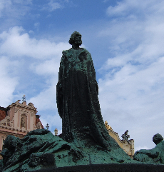旧市街広場にあるヤン・フスさんの像。見てもとりたてて感慨はない。