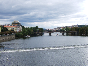 カレル橋から見た街。橋は現在修復を行っている場所があった。