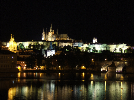 プラハ城の夜景。ライトアップしてとても美しい。