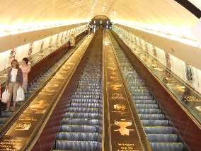 プラハの地下鉄に通じるエスカレータ。とても長いので驚いた。