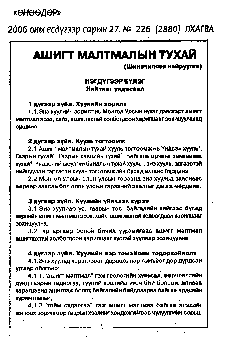 (追補)筆者は、この改正された鉱山法の全文を入手できなかったが、「ウヌードゥル新聞」が2006年09月27日と29日付でその全文を掲載した。