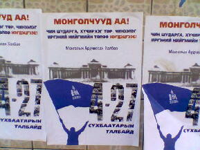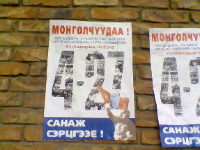 モンゴル民主同盟は、18年前のように(注:後述)大勢の人々が参加して、「第2次社会革命を起こす」と、広報活動を繰り広げ、「誠実、強力な政治、豊かな市民社会のために統一しよう」というポスターを市内至る所に貼った。