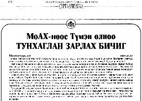 すなわち、それは、人民革命党を非難して、政権を担うことのできないМ.エンフボルドを罷免し、国家大ホラル(国会)を解散させること、である。彼らは、新聞に1頁全面を使ってこの主旨の広告を出した。