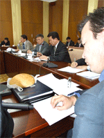 (手前がモンゴル労働組合連合С.ガンバータル議長。ウヌードゥル新聞2008年4月22日付掲載より)