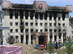 (焼き打ちされた人民革命党本部:山崎光高氏撮影)