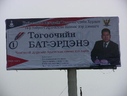(ウランバートル市チンゲルテイ区立候補者のポスター・その1[山崎光高氏撮影])