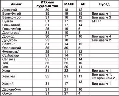 選挙結果(暫定)は、21アイマグでは、人民革命党が18アイマグ、民主党が3アイマグで勝利し、全体としてみれば、人民革命党が勝利した。
