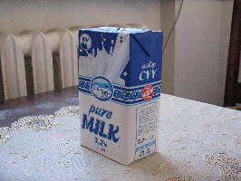 (注:これは、「スー」乳業会社のものではないが、モンゴルで一般的に利用されている脱脂粉乳からの加工乳。酒造業を展開するАРУ社製。所有主はバトフー国家大ホラル[国会]副議長[民主党]。筆者写す)