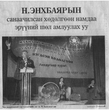 この動きに対し、エンフバヤルは釘を刺すことを忘れない。彼は、新聞紙上で自説を展開した。すなわち、