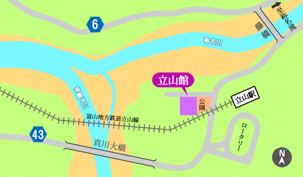 - JR富山駅で富山地方鉄道立山線に乗換え、立山駅(終点)下車1階西口、徒歩1分。