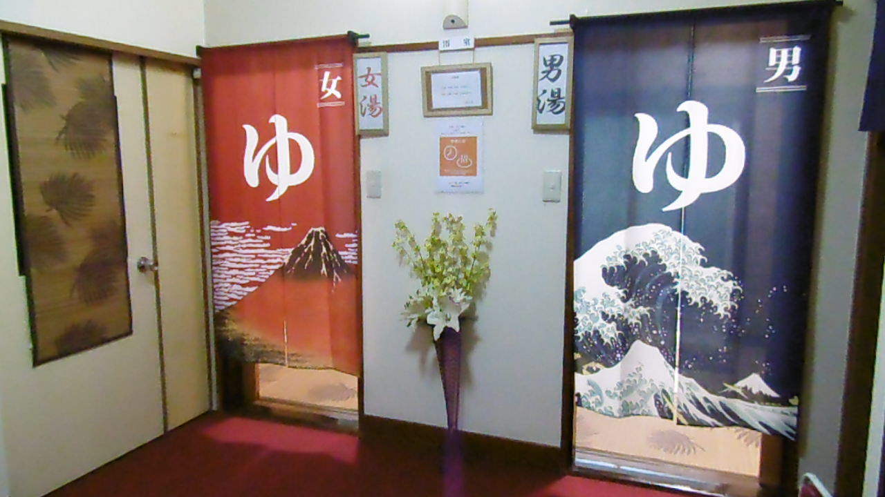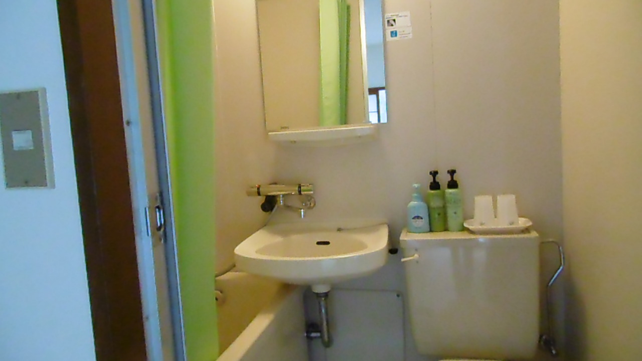 各お部屋・全室・ユニットバス・トイレ付き‼ 共同浴場もあります。 お部屋でお好きな入浴時間お楽しみください‼ ボデーソープ・リンスインシャンプー・ハンドソープ・コップ・ドライヤー・バスタブ・シャワーカーテン・洗面所・鏡・トイレ等の設備があります。 男湯・女湯 共同浴場もあります。 ボデーソープ・リンスインシャンプー・石鹼・ヘルスメーター・ドライヤー・鏡・時計・モップ・等の設備があります。
